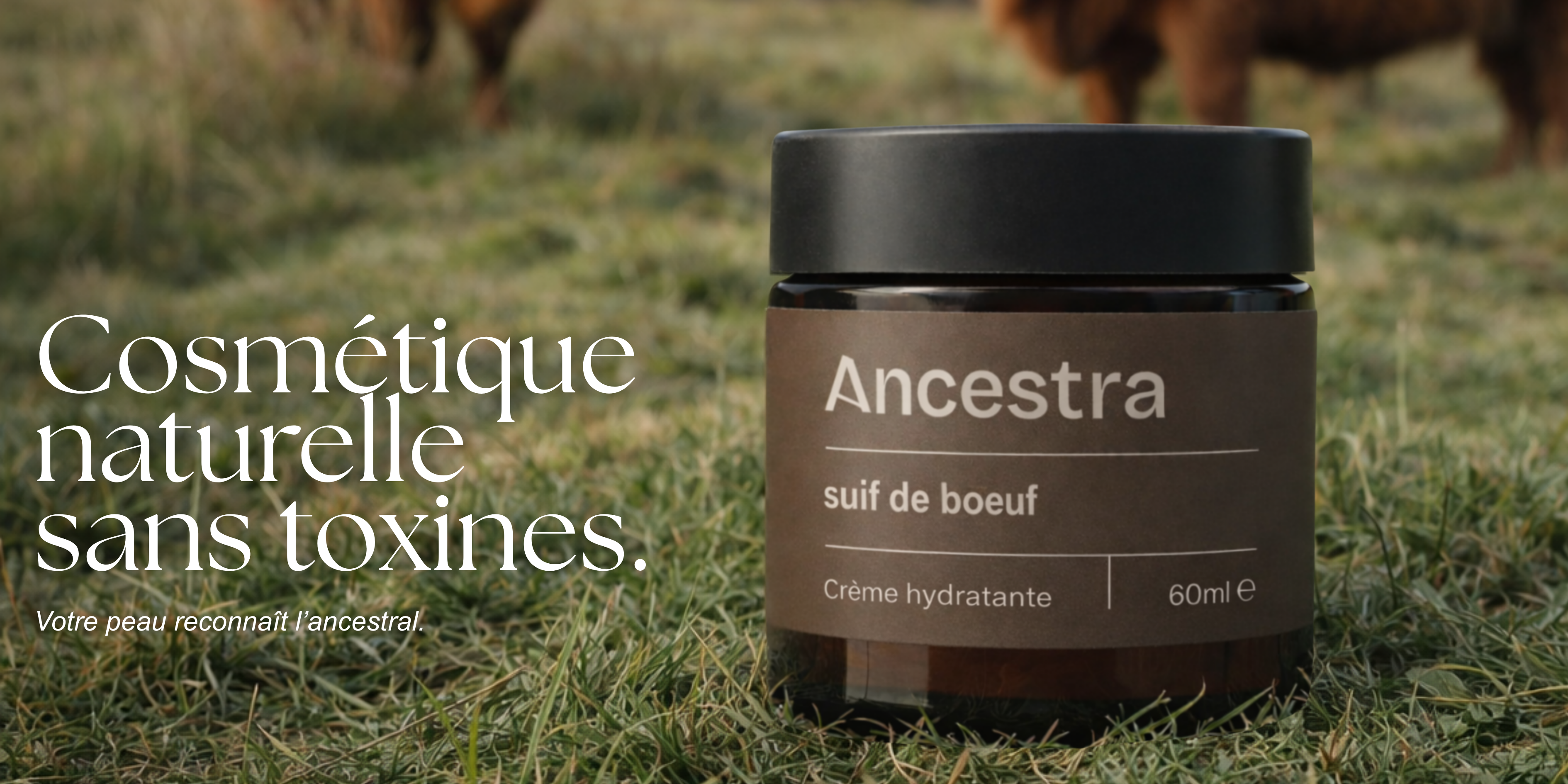 Alors que la cosmétique « naturelle » mélange souvent de nombreux ingrédients, Ancestra n’en utilise qu’un : suif de bœuf, pur, traçable et sans additifs. Rien ne concurrence, rien n’irrite, rien de superflu.